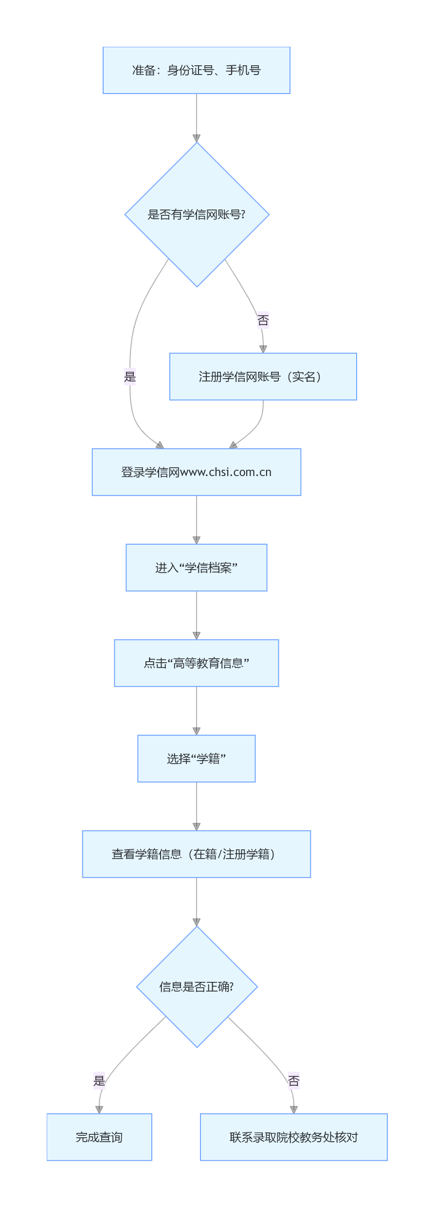 浙江成人高考學籍唯一官方查詢渠道為中國高等教育學生信息網(學信網,www.chsi.com.cn)。成考錄取后,一般在次年 2-3 月入學并完成注冊,注冊后1-2 個月可在學信網查詢到學籍,狀態顯示為 **“在籍”。