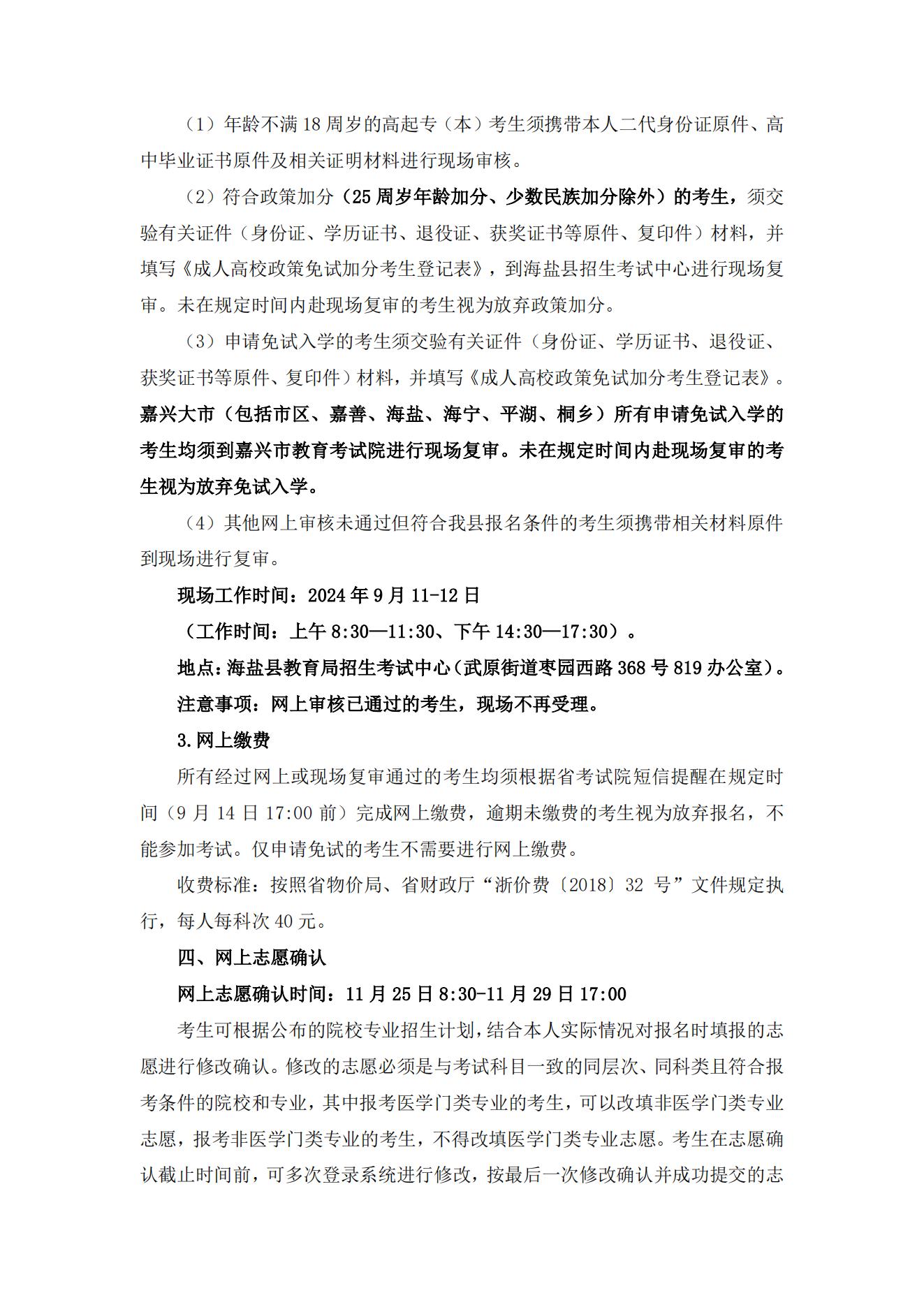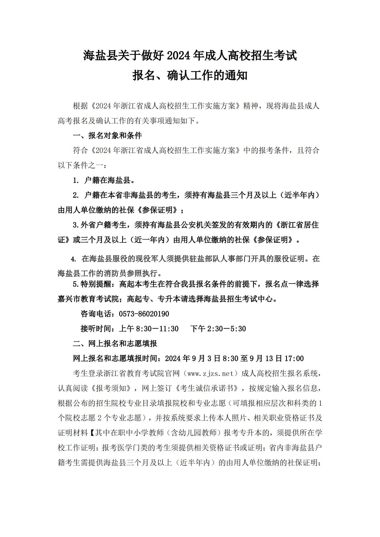 海鹽縣關于做好2024年成人高校招生考試報名、確認工作的通知