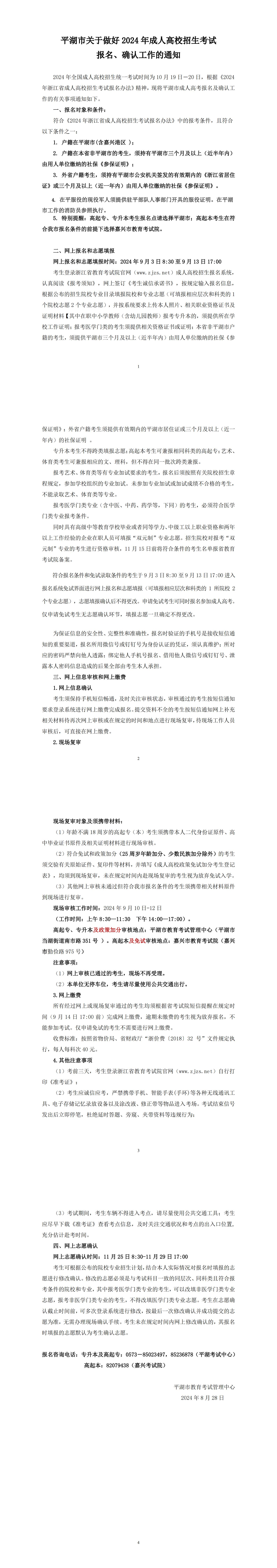 平湖市關(guān)于做好2024年成人高校招生考試報名、確認(rèn)工作的通知