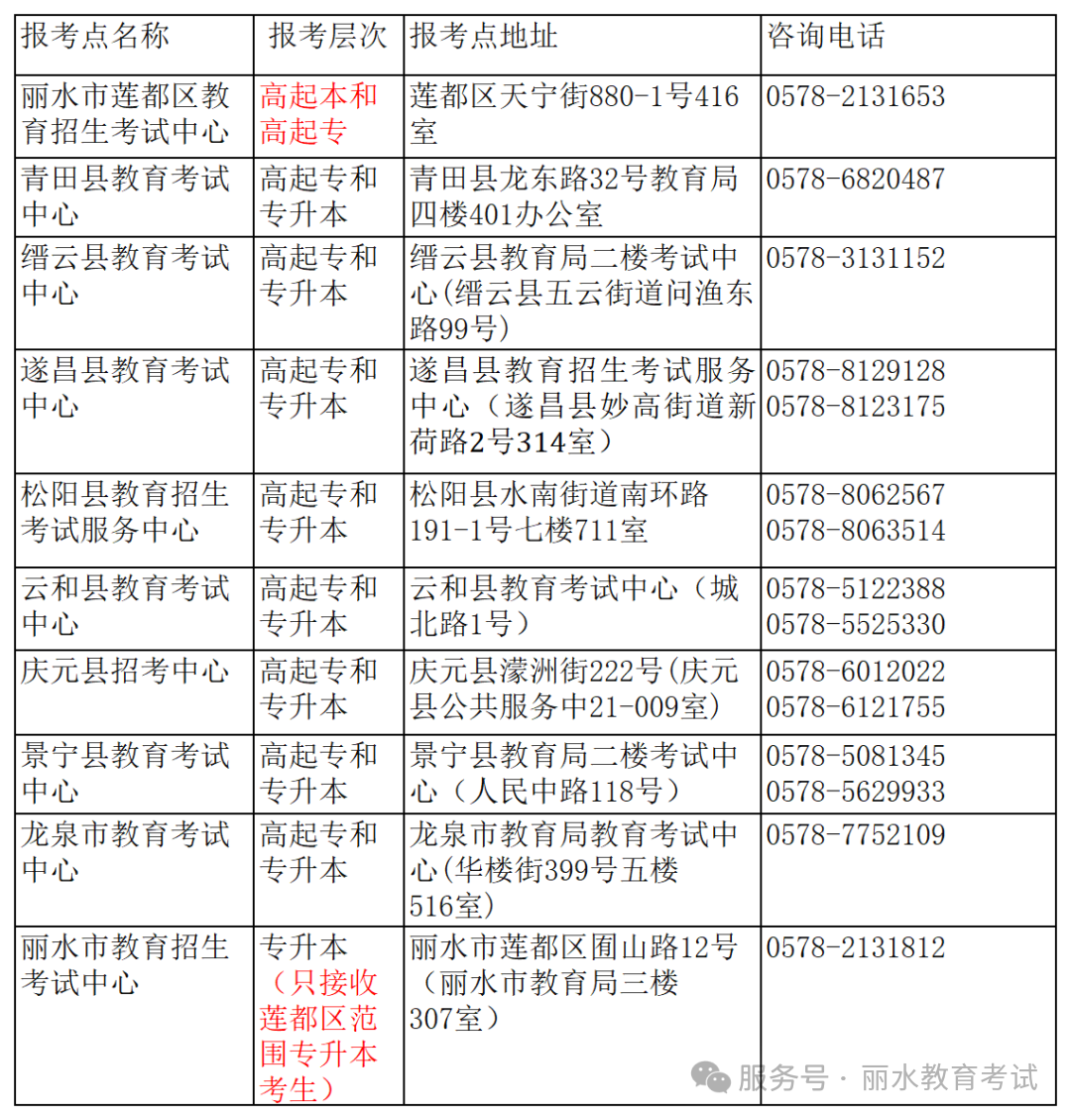 特別提醒:全市高起本考生報(bào)考點(diǎn)選擇麗水市蓮都區(qū)教育招生考試中心(全市高起本僅設(shè)麗水市蓮都區(qū)教育招生考試中心報(bào)考點(diǎn))。國(guó)家承認(rèn)學(xué)歷的各類(lèi)高、中等學(xué)校在校生不得報(bào)考,請(qǐng)考生根據(jù)自身情況選擇相應(yīng)報(bào)考點(diǎn)。