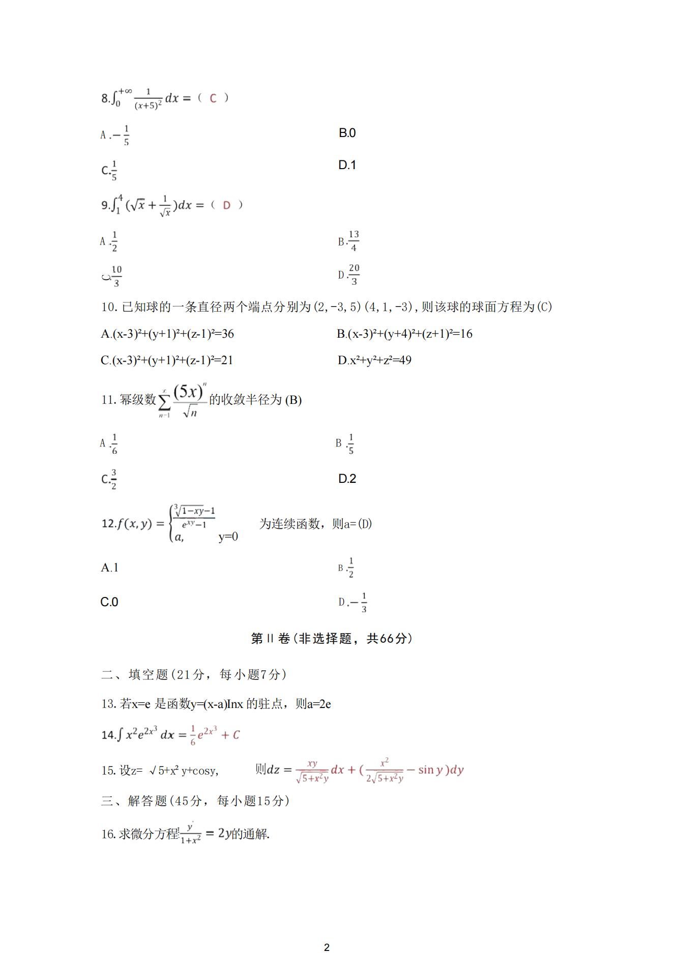 2025年成人高考專升本高等數學一真題及解析(考生回憶版)