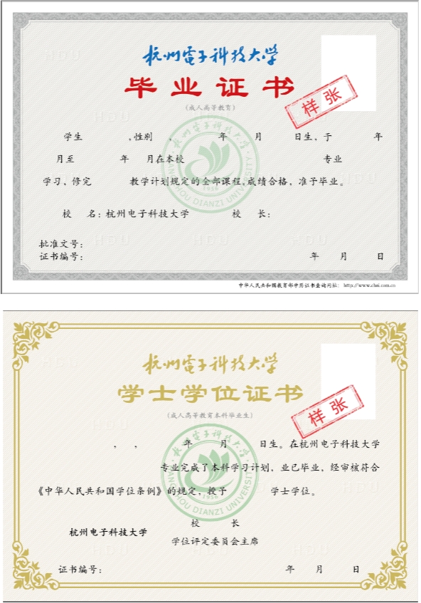 畢業證書及學位證書樣張:(樣張僅供參考,具體以學生畢業當年所發實際證書為準)