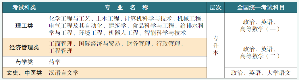 一、招生專業和考試科目