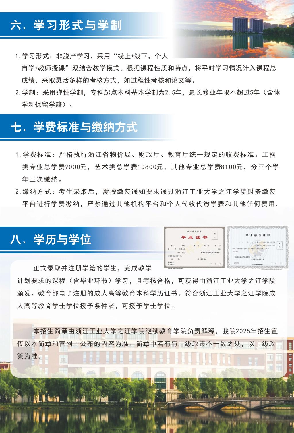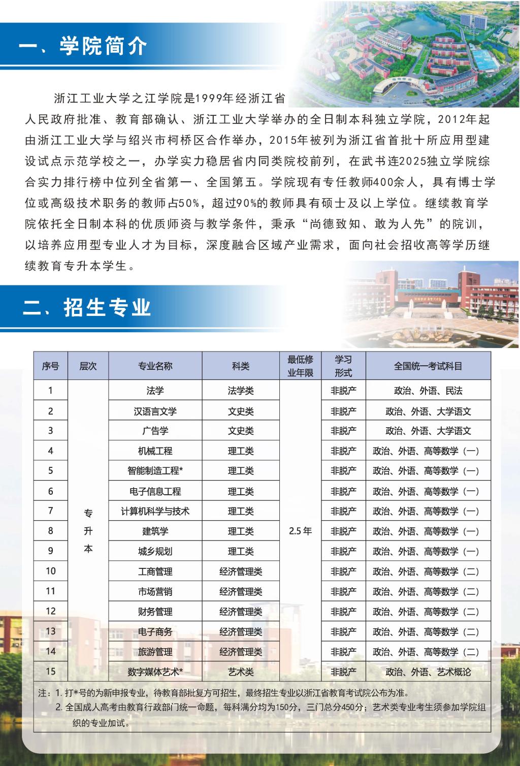 浙江工業大學之江學院高等學歷繼續教育2025年招生簡章